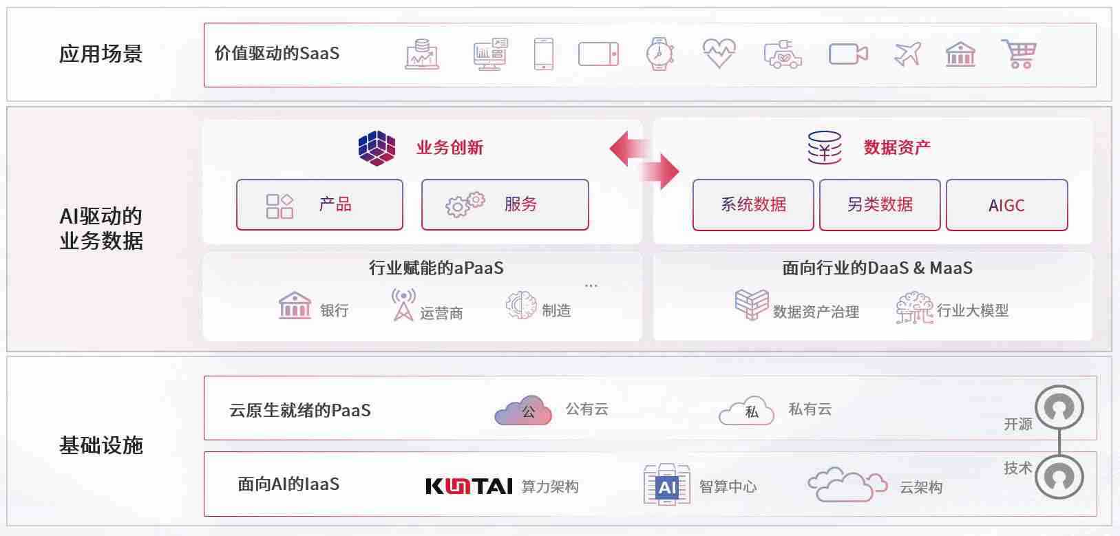 数字时代,,围绕企业数字化转型的关键要素,,,,z6com尊龙数码开创性的提出数云融合战略和技术体系框架,,,着力在云原生、、数字原生、、、AI原生和信创产业上架构产品和服务能力,,,,为处在不同数字化转型阶段的快消零售、、、、汽车、、、金融、、、医疗、、、、政企、、、、教育、、、、运营商等行业客户提供泛在的敏捷IT能力和融合的数据驱动能力,,,构建跨界融合创新的数字业务场景和新业务模式,,助力企业级客户建立面向未来的核心能力和竞争优势,,,,全面推动社会的数字化、、智能化转型升级。。。。